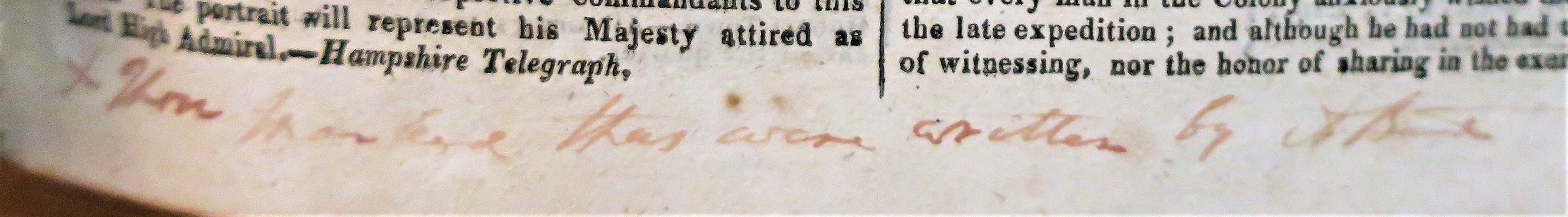 I have been unable so far to locate Bent’s own volumes of the Colonial Times for 1827 (containing the famous ‘mourning’ issue) and 1829 (which includes Henry Savery’s ‘Hermit’ sketches). I do wonder what might be found scribbled on these if they ever turn up!