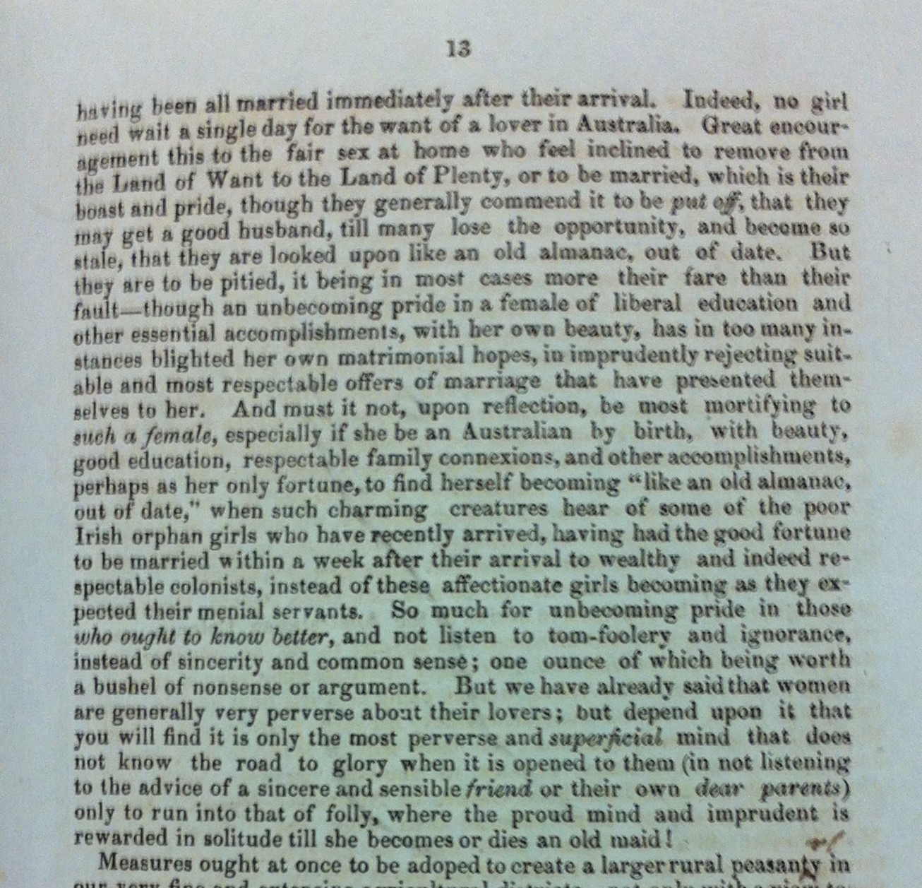 Prospectus of a preparatory Matrimonial Alliance and Protective Immigration and Colonization Office, Sydney, A. Bent, 1849. p. 13 (State Records NSW NRS 905 Container 4/2883)